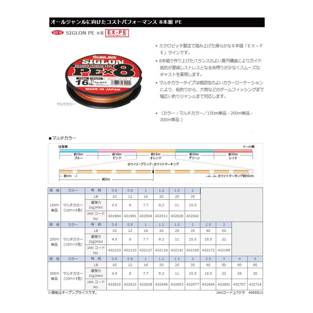 SUNLINE Siglon PEx8 Multi-Color Fishing Line - Various Lengths and Strengths